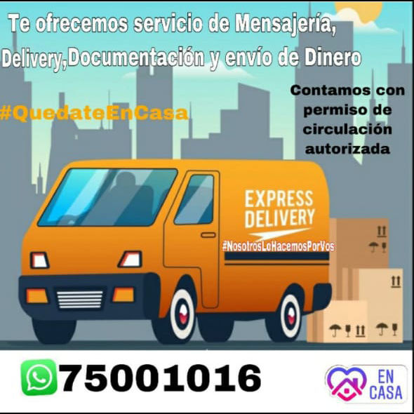 Delivery (mensajería)24 abr 20201 Min. de lecturaActualizado: 2 may 2020WhatsApp: 75001016#delivery #entrega #mensajeria #auto #dinero